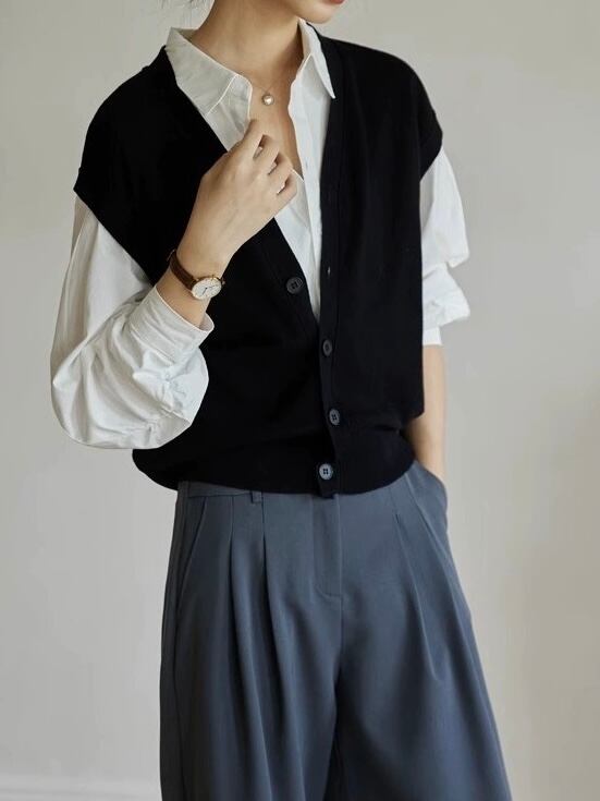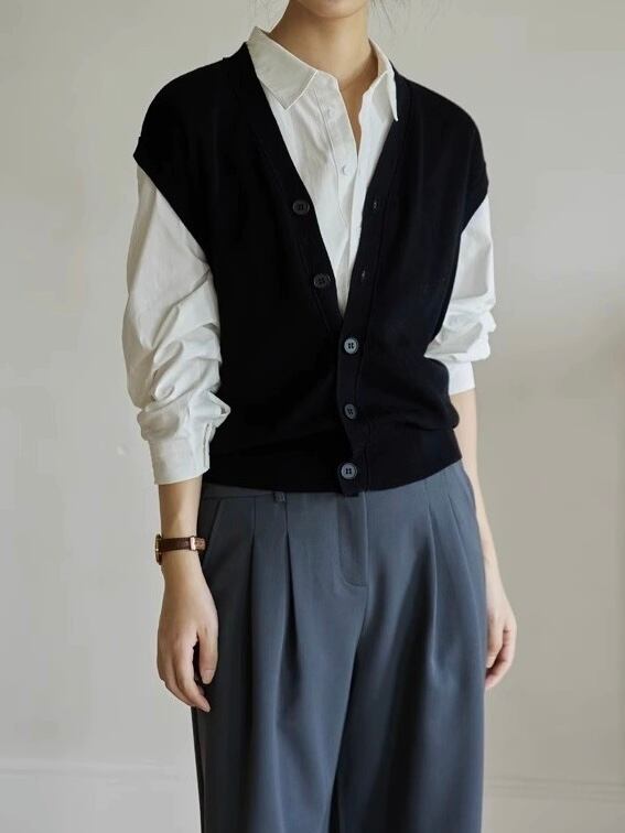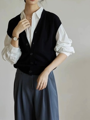 • V-neck open vest 00598