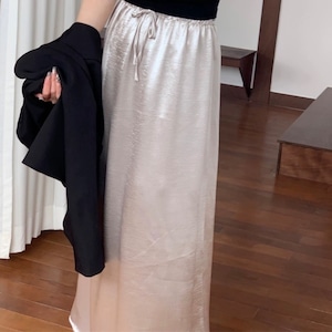 drawstring silky long skirt 00340